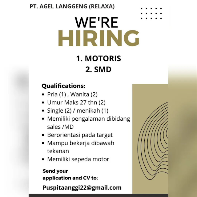 Berikut kami sampaikan informasi Lowongan Kerja dari PT Agel Langgeng.